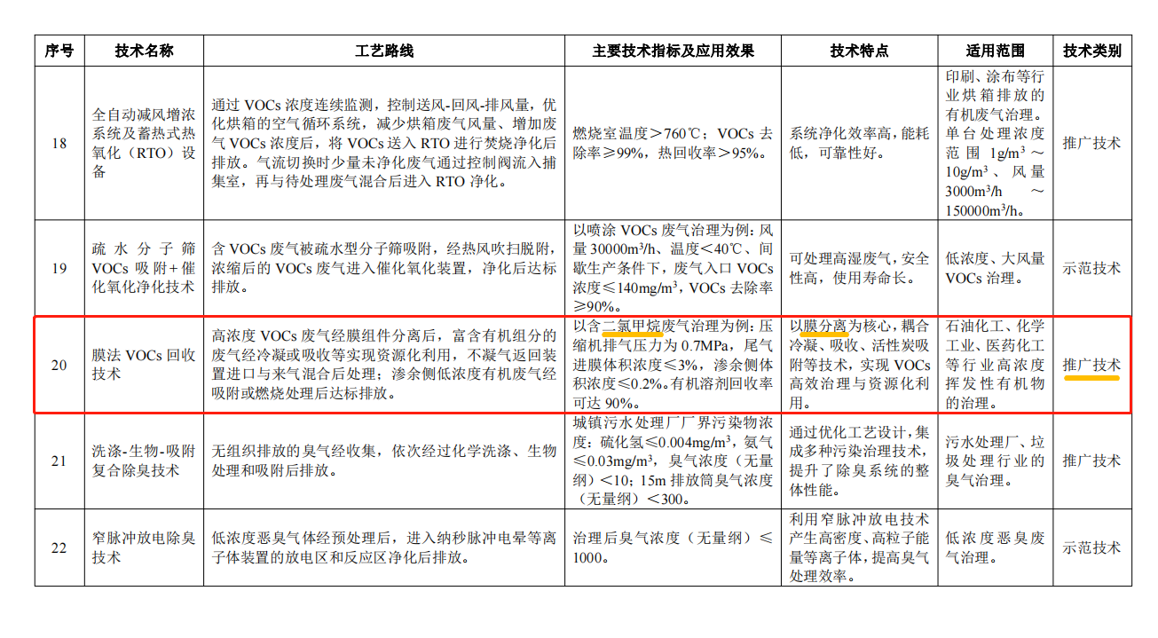 Recently, the Ministry of Ecology and Environment of the People's Republic of China issued a public announcement on the 2021 National Catalogue of Advanced Pollution Control Technologies (Air Pollution Control, Noise and Vibration Control) (publication draft). The serial number 20 recommended pollution control technology in the document is: Compression Condensation+ Membrane + adsorption process, source recovery of VOCs. In particular, the source recovery and discharge of methylene chloride organic solvent vapor.
